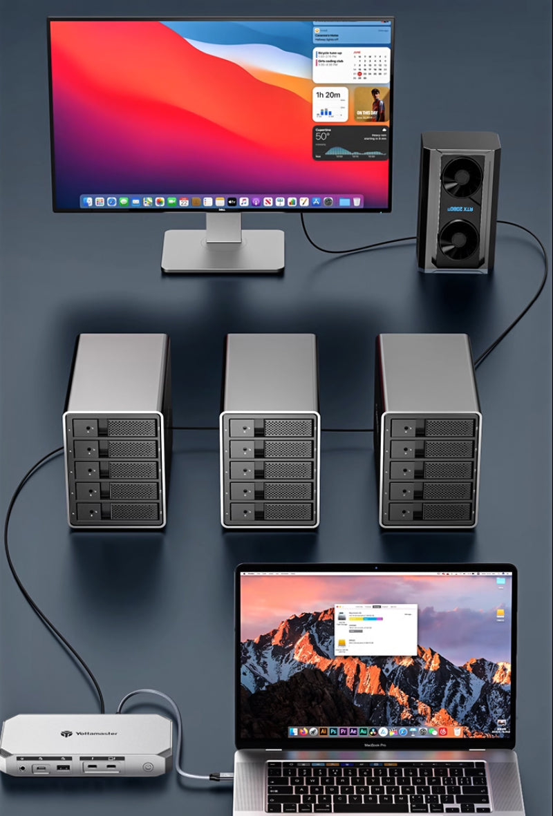 With daisy chain support for monitors, hard drive enclosures, docking stations, Steam Deck, and other Thunderbolt devices, Yottamaster Thunderbolt™ 4 Dock streamlines your workspace and enhances productivity so that it simplifies your connection layout and efficiently expands your setup for professional use scenarios.