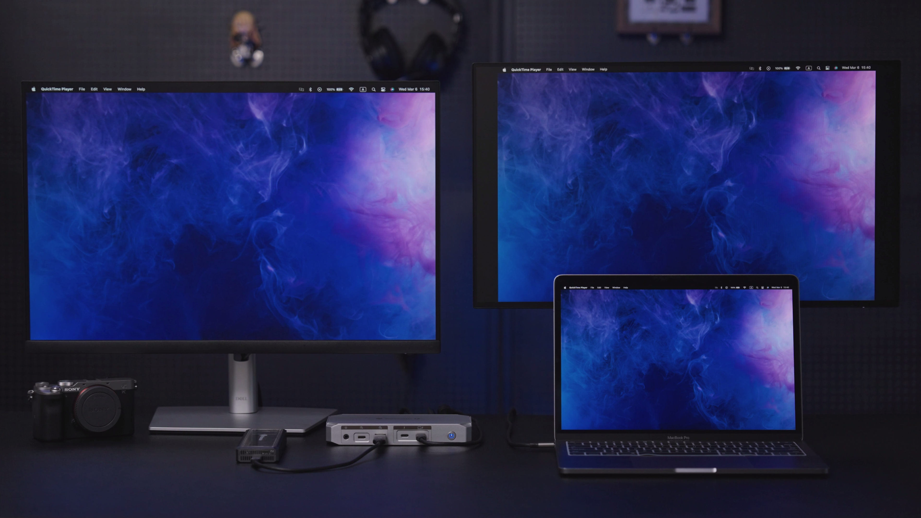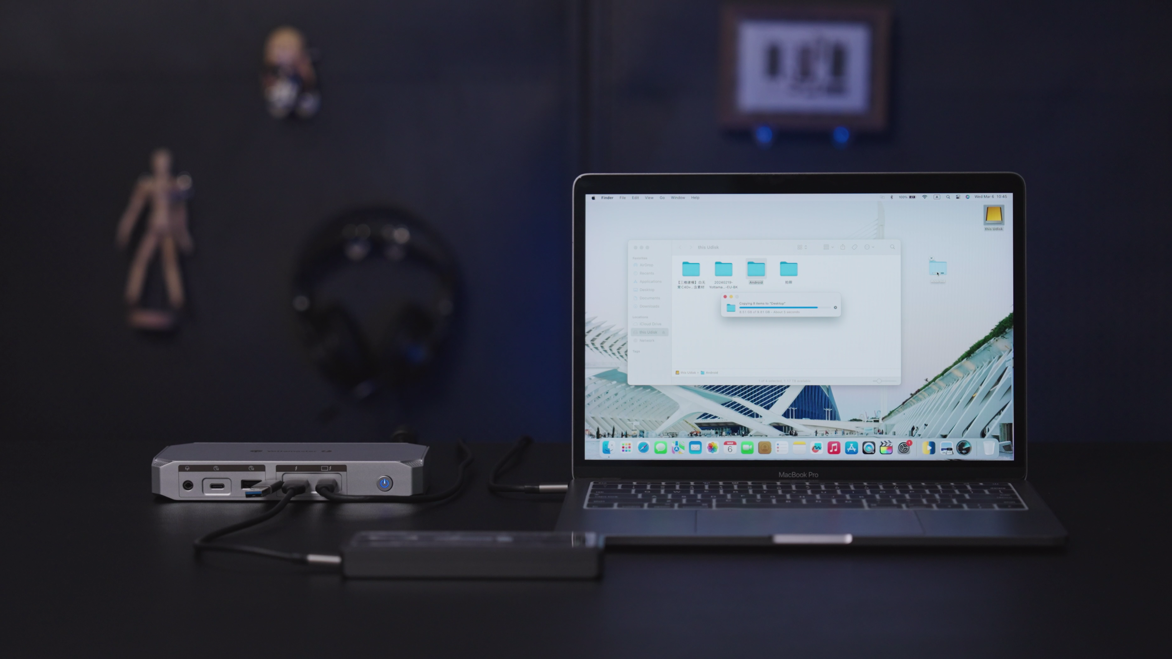 5.When two monitors are connected, the dock will no longer transfer data at 40Gbps due to the bandwidth used to output video. Transfer speeds will vary depending on the amount of Thunderbolt device connected at a time