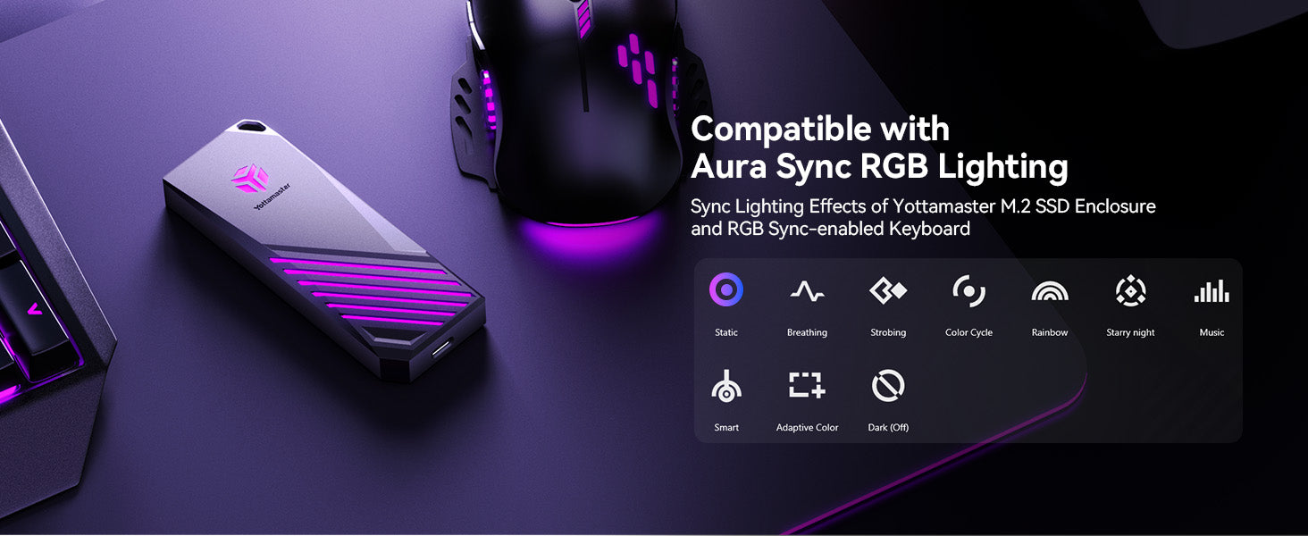 Yottamaster M.2 NVME SATA SSD RGB Gaming Enclosure