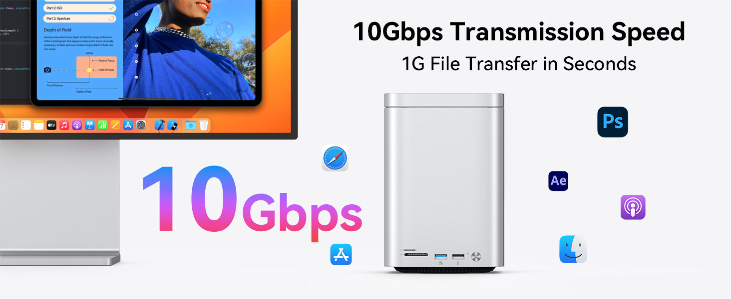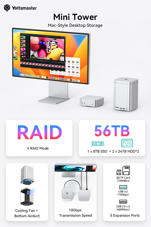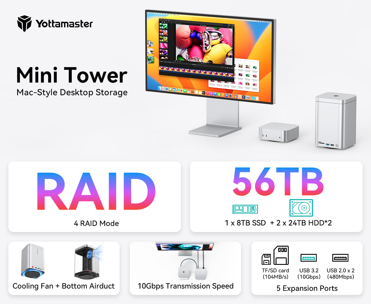 Yottamaster HSD10 MiniTower 10Gbps Hybrid Storage System with RAID(Up to 56TB)