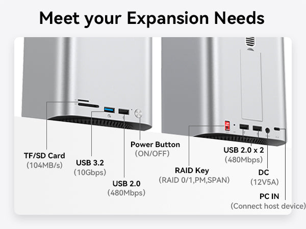 [Comprehensive Connectivity Hub] The MiniTower significantly expands the connectivity of the Mac mini M4. It is equipped with a versatile port selection, including one USB-A (10Gbps) port, three USB 2.0 ports for peripherals, and independent UHS-I TF/SD 3.0 card readers.