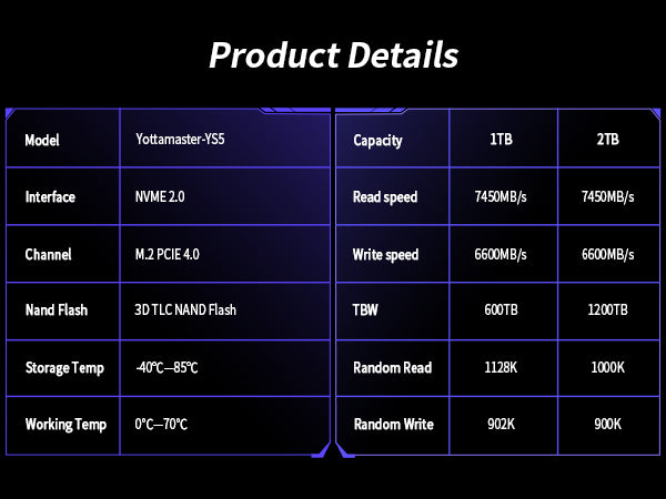 - 【Advanced Cooling for Sustained Performance】The unique heatsink design ensures the Yottamaster 1TB/2TB NVMe SSD runs cool and stable during extended, intense gaming sessions, providing reliable storage expansion for your PS5
